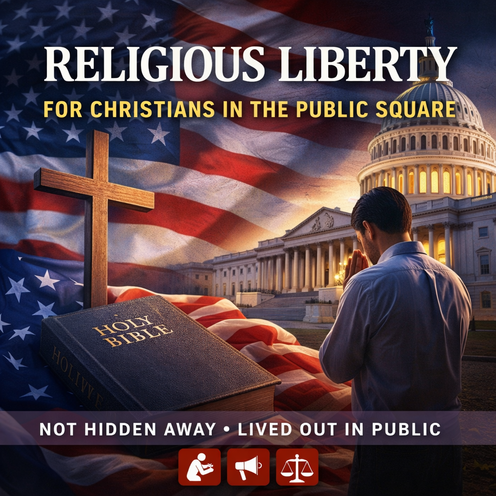 Religious liberty was never meant to be a hidden thing kept safe in private belief. The First Amendment protects public witness – the right to pray openly, to act on conscience, and to speak moral truth in the marketplace of ideas. When believers retreat, the public square becomes quieter and less free.