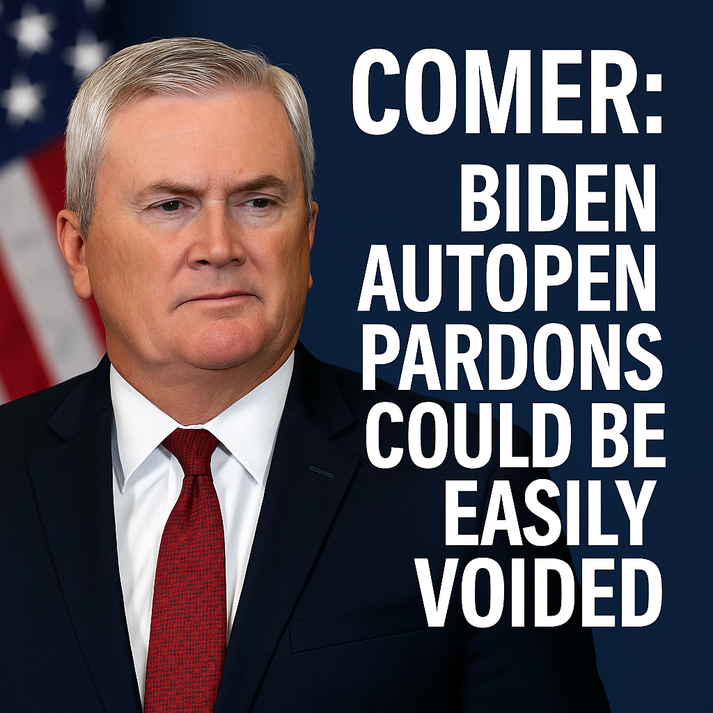House Oversight Committee Chairman James Comer has raised sharp concerns about President Joe Biden’s use of the autopen to sign presidential pardons, warning that such actions could be easily voided under constitutional scrutiny.